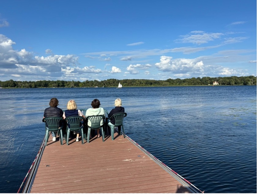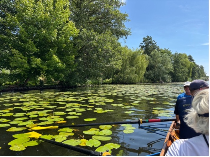 Die längste Ausfahrt stand am Donnerstag auf dem Plan: Durch den Amazonas des Nordens, der Wakenitz, bis zum Razzeburger See und zurück, eine Strecke mit 45km. In Aussicht darauf, ging es für alle früh ins Bett. Auf der Wakenitz schlängelnd, begegnete den Ruderer/innen die unberührte Natur, wie man sie nur vom Wasser aus bewundern kann. Kurz vor der Einfahrt auf den Razzeburger See kräftigten sie sich mit ihrem mitgebrachten Reiseproviant, ruhten ihre müden Knochen und Gemüter aus und erfrischten sich an einem Eis am Stiel. Der Razzeburger See verlangte den Ruderer/innen so einiges ab, was auch an den Kräften der Jugend bemerkbar war. Trotz erschwerter Rückreise an den Ausgangspunkt, liesen sie sich ihre gute Laune nicht nehmen, was man an den lautstarken Gesängen unschwer erkennen konnte.